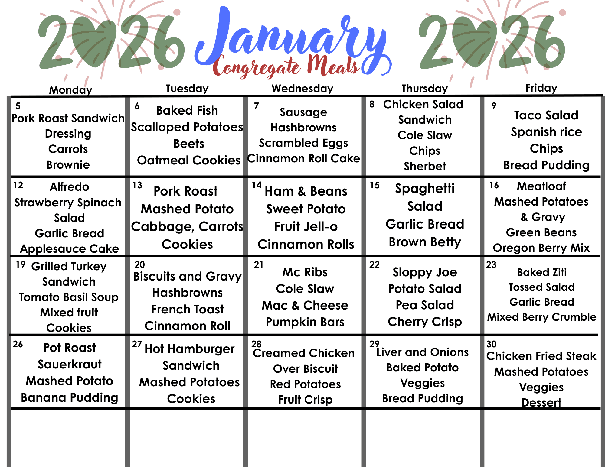 Meals are served Monday through Friday, offering a chance for seniors to gather, socialize, and participate in other activities at the community center.